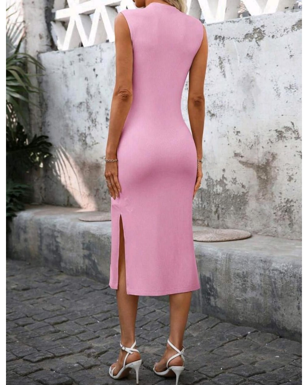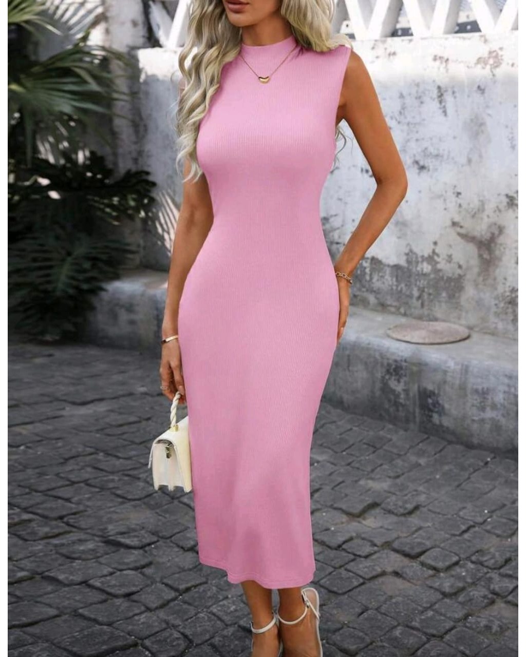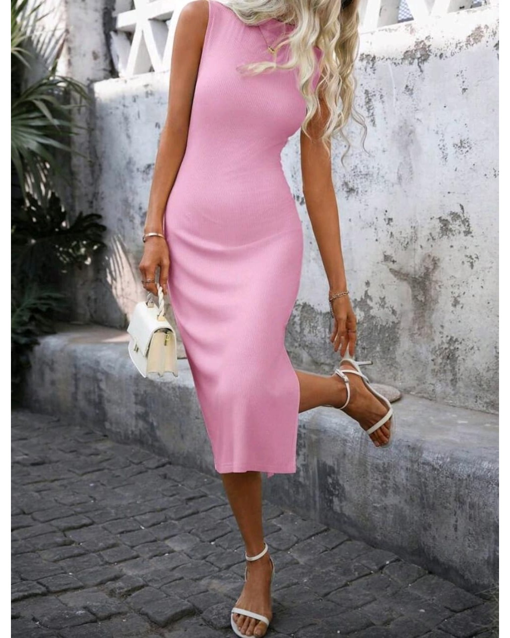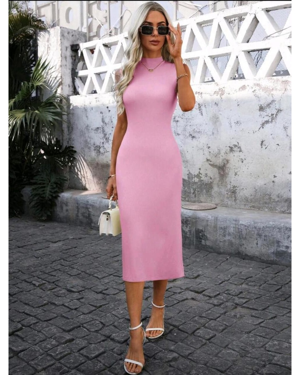 The VERVE Aura Ribbed Midi Dress, rendered in a tender Petal Pink, embodies effortless grace. It’s a statement of subtle luxury, designed for the modern woman who values both style and comfort.