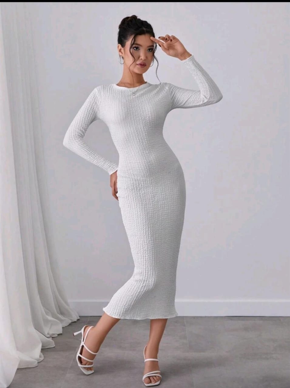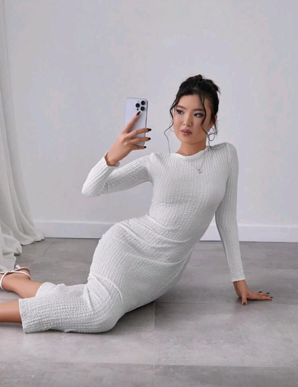 The VERVE Lumiere Sculpted Knit Dress, presented in pristine White, exemplifies our philosophy of refined luxury. It embodies a disciplined elegance, blending sophisticated design with tactile comfort for a truly elevated silhouette.
