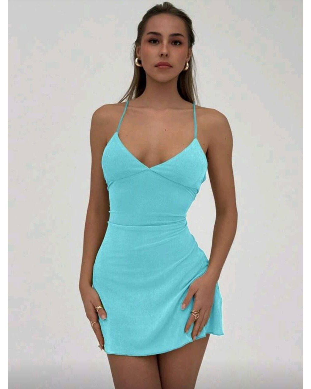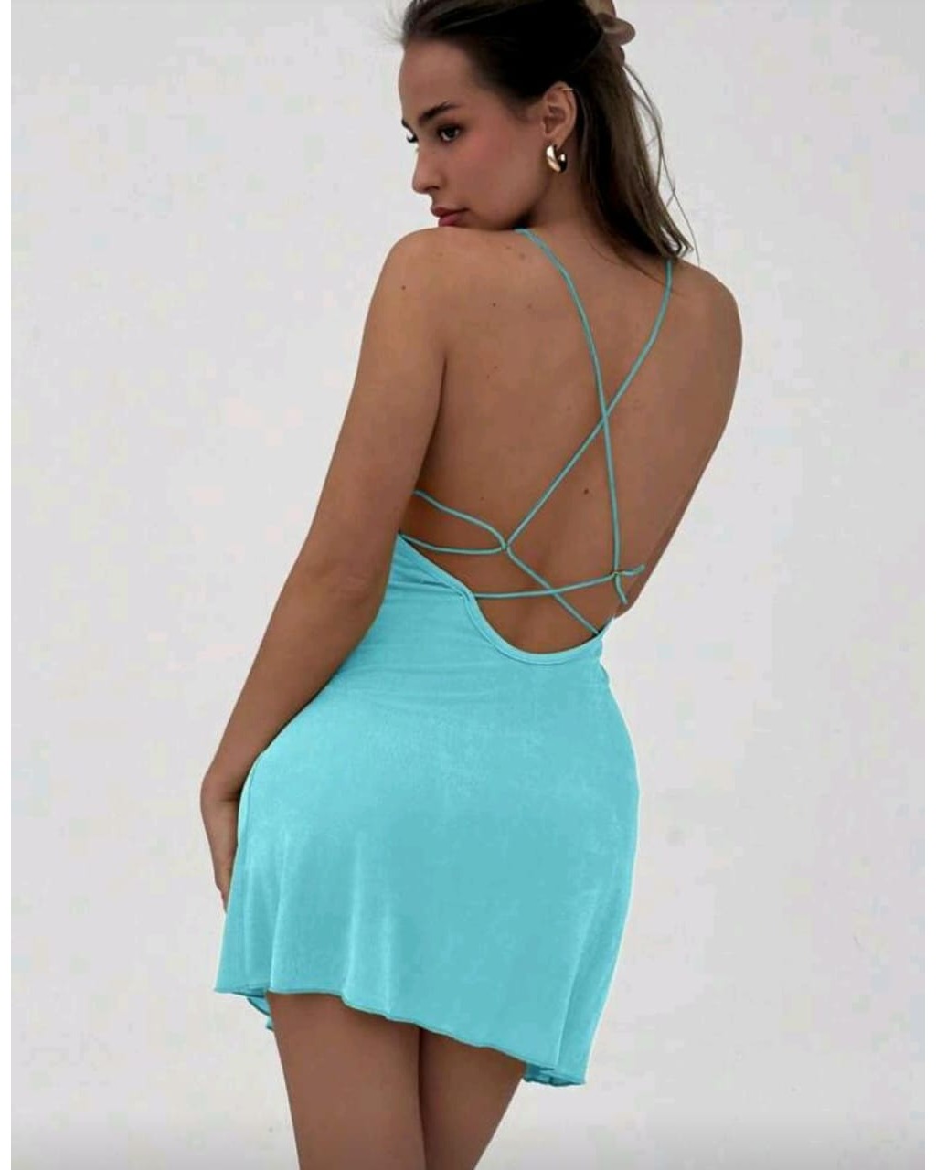 In a captivating Aqua Blue, this mini dress is crafted from a fluid satin blend, offering an alluring drape for both elegant evenings and sun-drenched escapes. Designed for quiet confidence, it ensures you make a memorable impression.